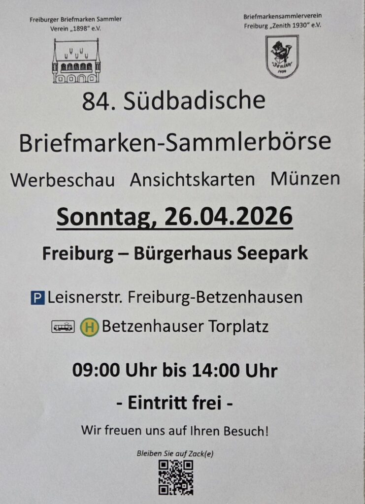 Südbadische Briefmarken-Sammlerbörse, Freiburg, 26.4.2026